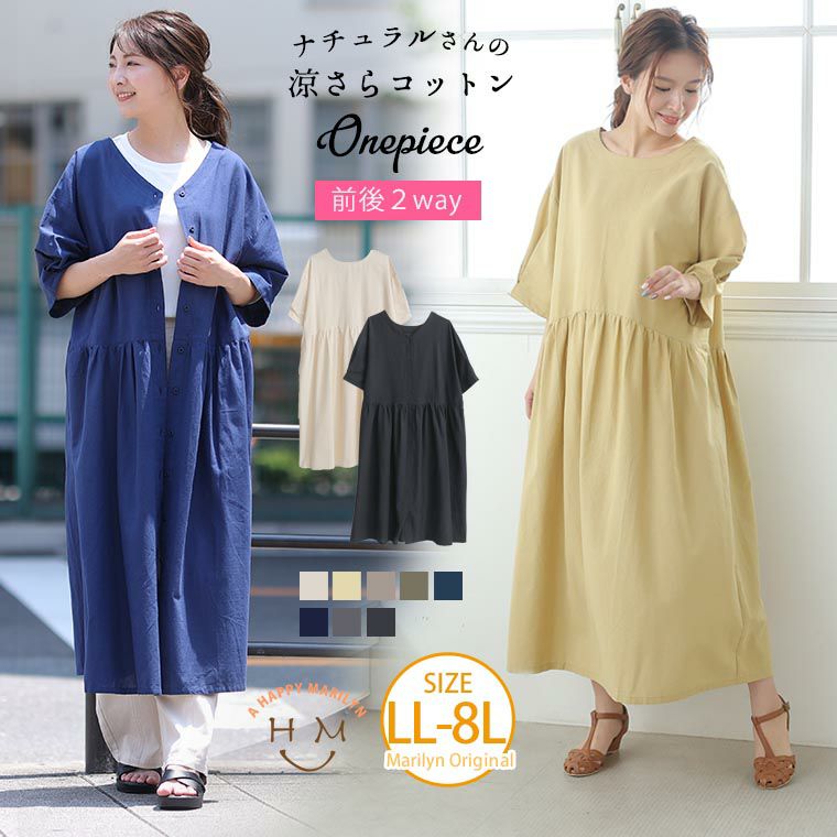 大きいサイズ ナチュラルさんの コットン 2way ギャザー ワンピース ハッピーマリリン